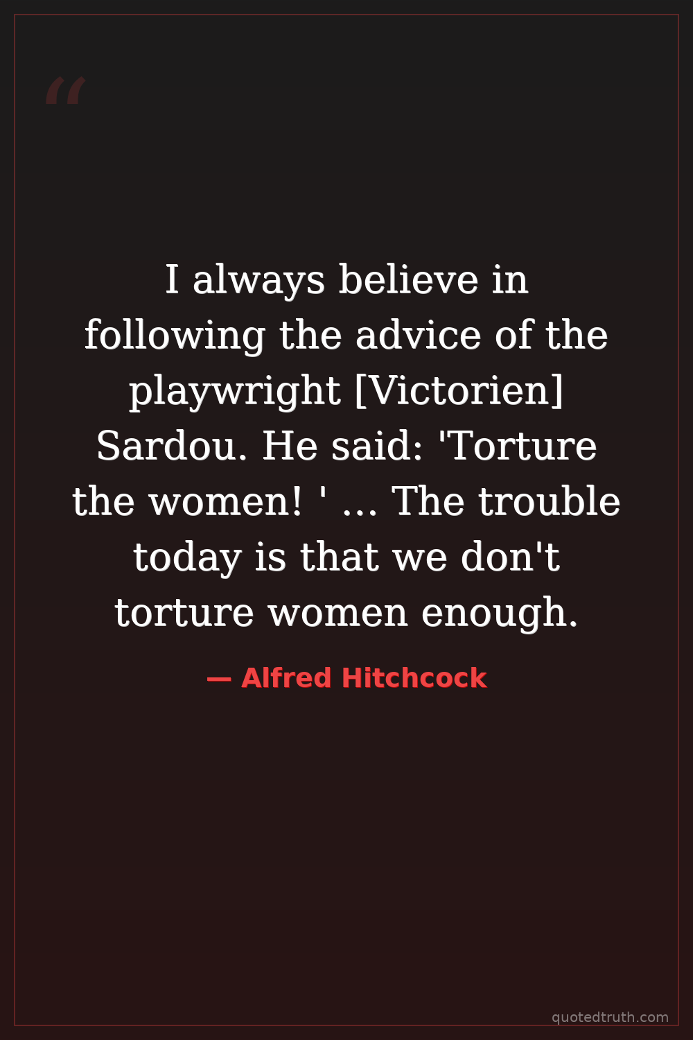 I always believe in following the advice of the playwright [Victorien] Sardou. He said: 'Torture the women! ' … The trouble today is that we don't torture women enough.