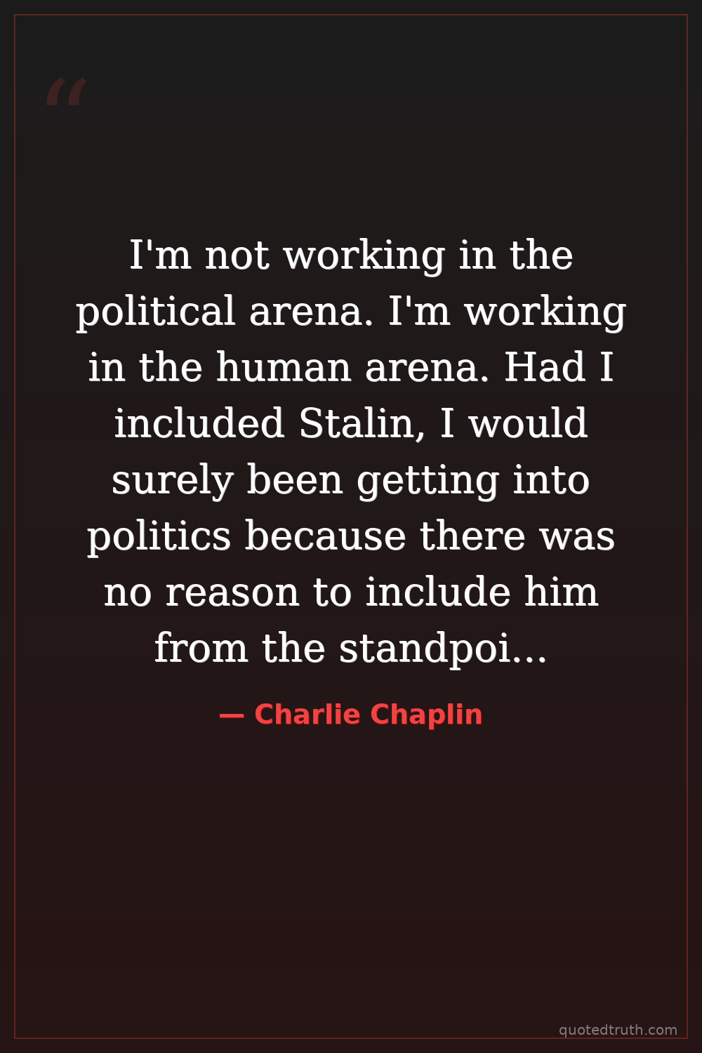 I'm not working in the political arena. I'm working in the human arena. Had I included Stalin, I would surely been getting into politics because there was no reason to include him from the standpoint I was taking.