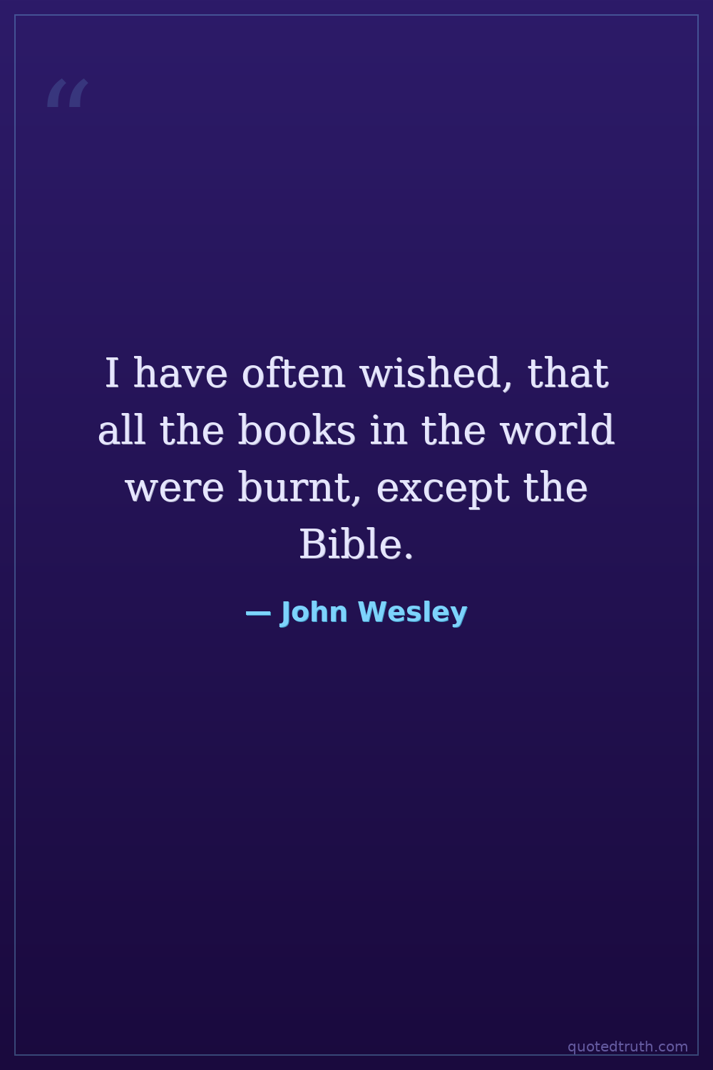 I have often wished, that all the books in the world were burnt, except the Bible.