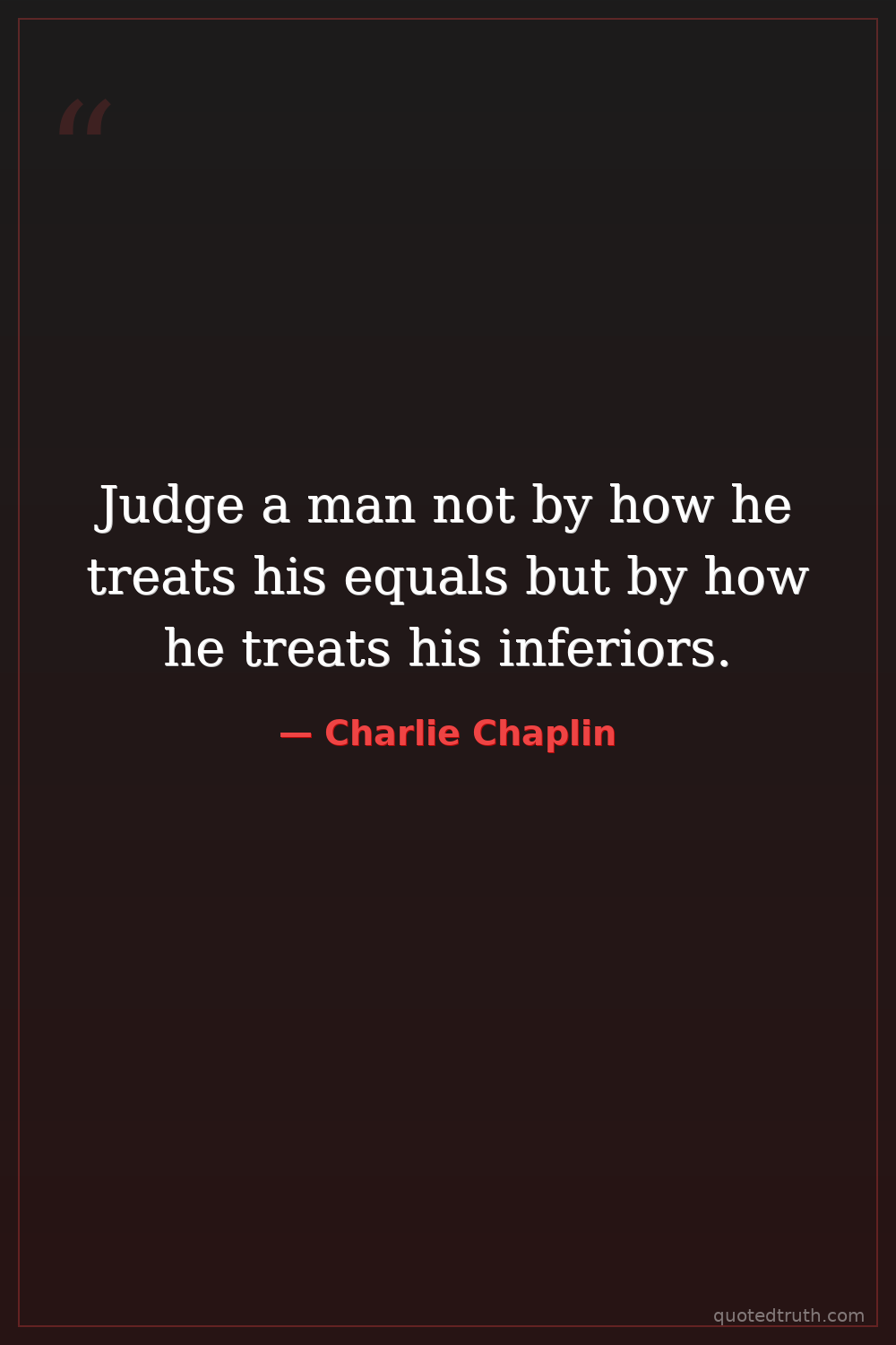 Judge a man not by how he treats his equals but by how he treats his inferiors.