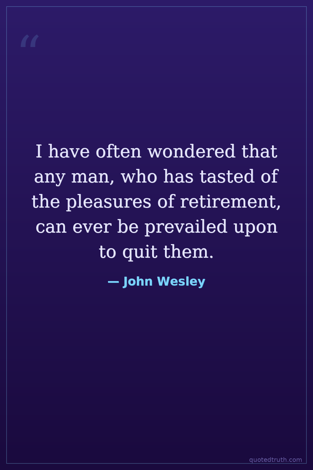 I have often wondered that any man, who has tasted of the pleasures of retirement, can ever be prevailed upon to quit them.