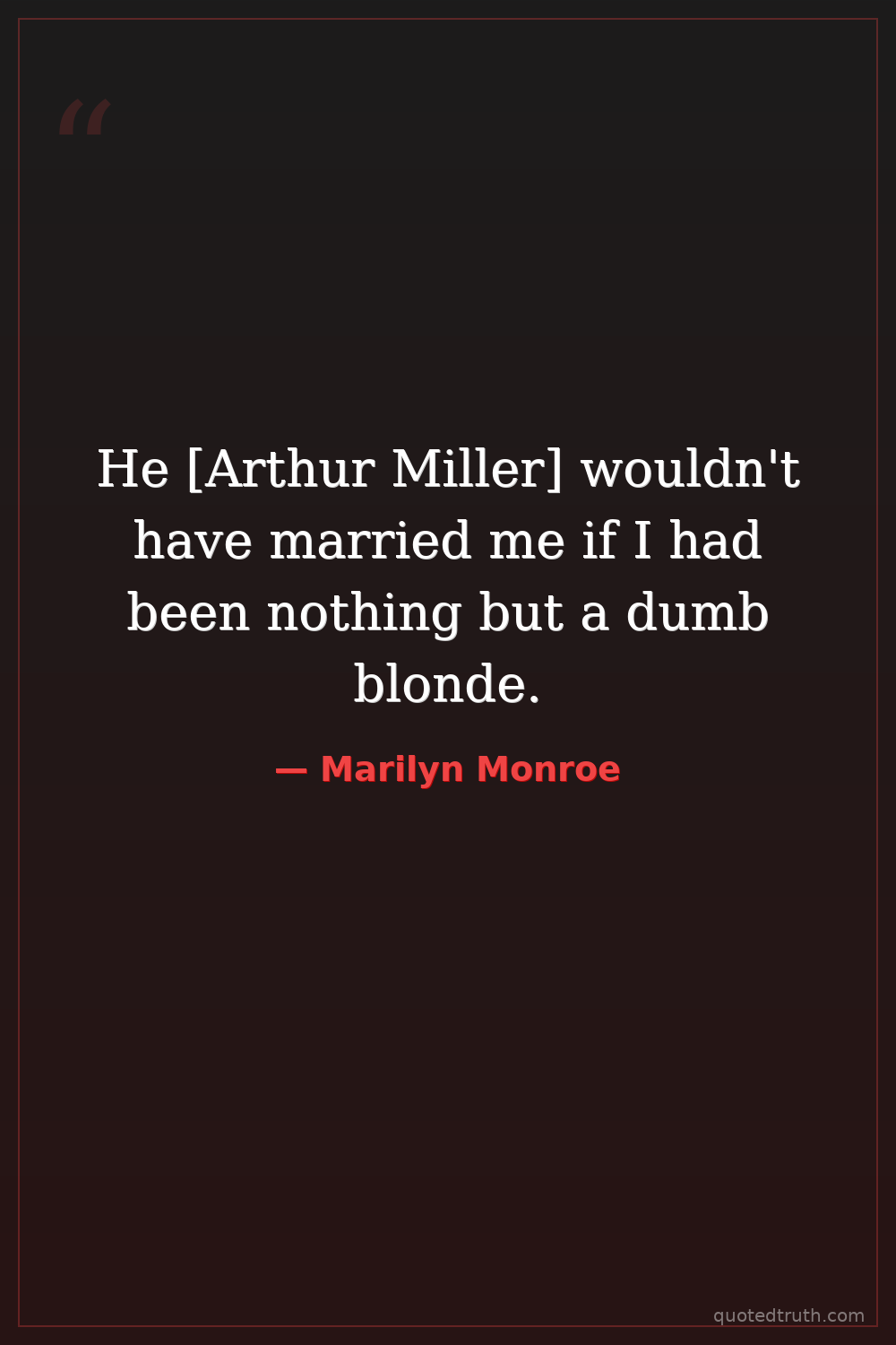He [Arthur Miller] wouldn't have married me if I had been nothing but a dumb blonde.