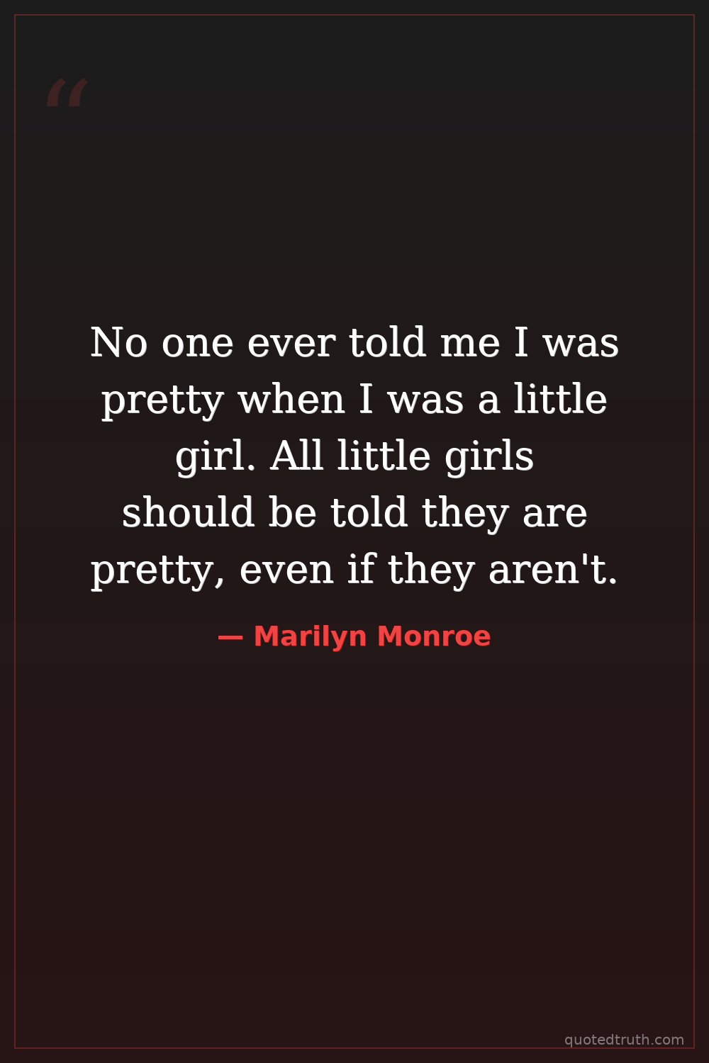 No one ever told me I was pretty when I was a little girl. All little girls should be told they are pretty, even if they aren't.