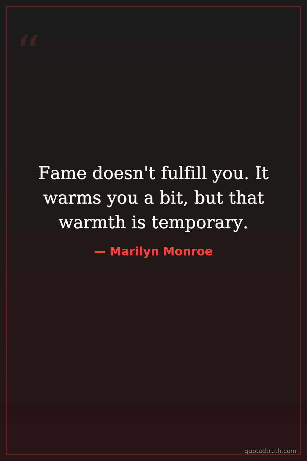 Fame doesn't fulfill you. It warms you a bit, but that warmth is temporary.