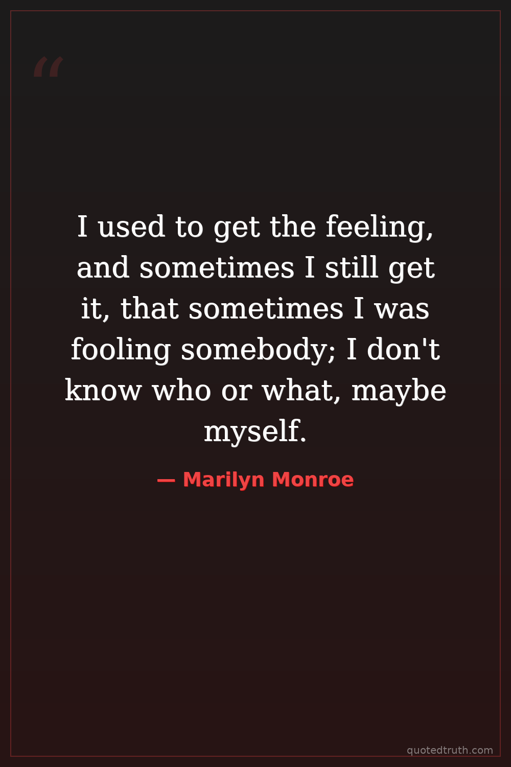I used to get the feeling, and sometimes I still get it, that sometimes I was fooling somebody; I don't know who or what, maybe myself.