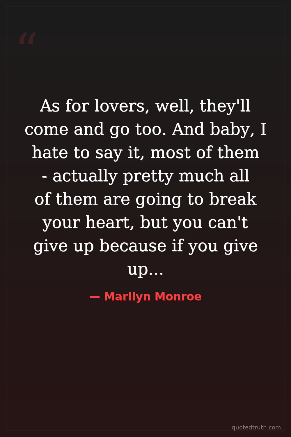 As for lovers, well, they'll come and go too. And baby, I hate to say it, most of them - actually pretty much all of them are going to break your heart, but you can't give up because if you give up, you'll never find your soulmate.