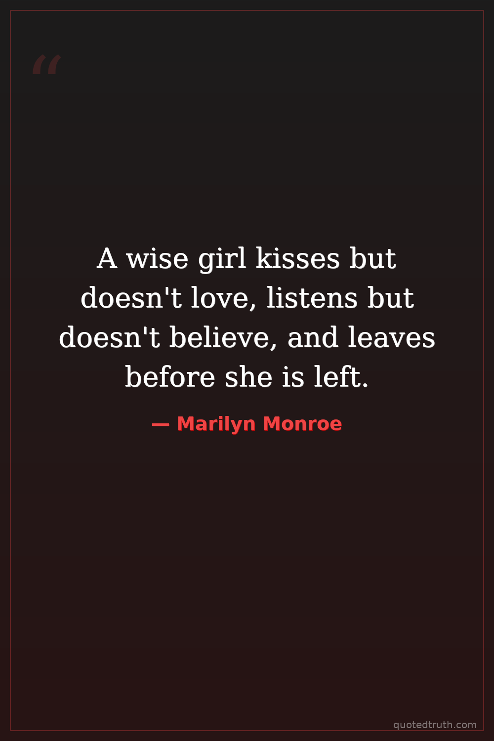 A wise girl kisses but doesn't love, listens but doesn't believe, and leaves before she is left.