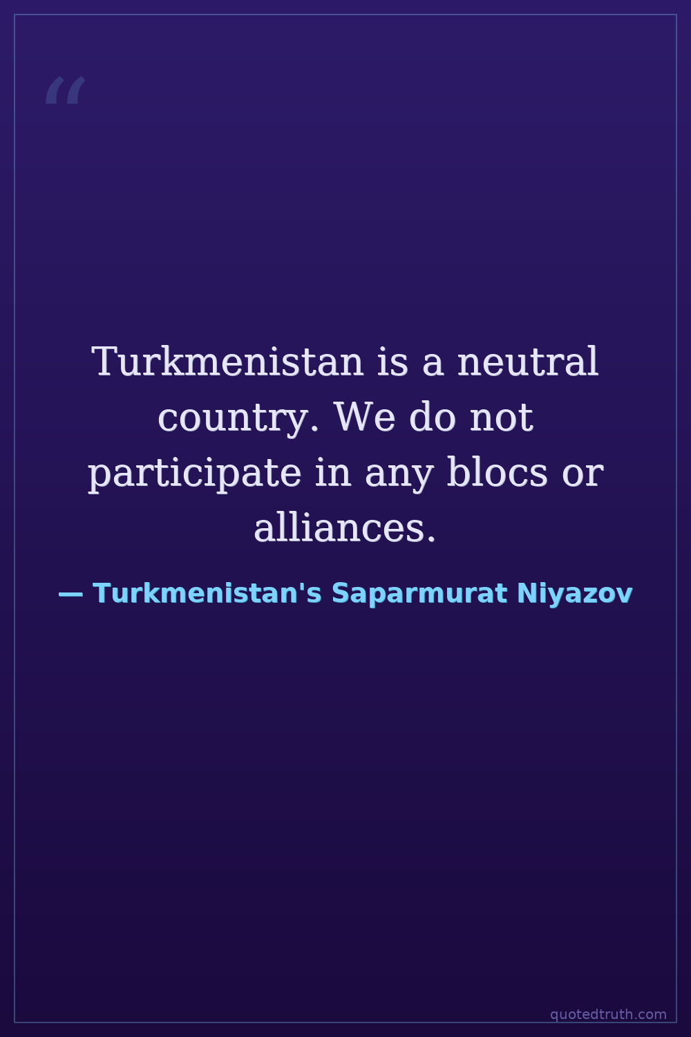 Turkmenistan is a neutral country. We do not participate in any blocs or alliances.