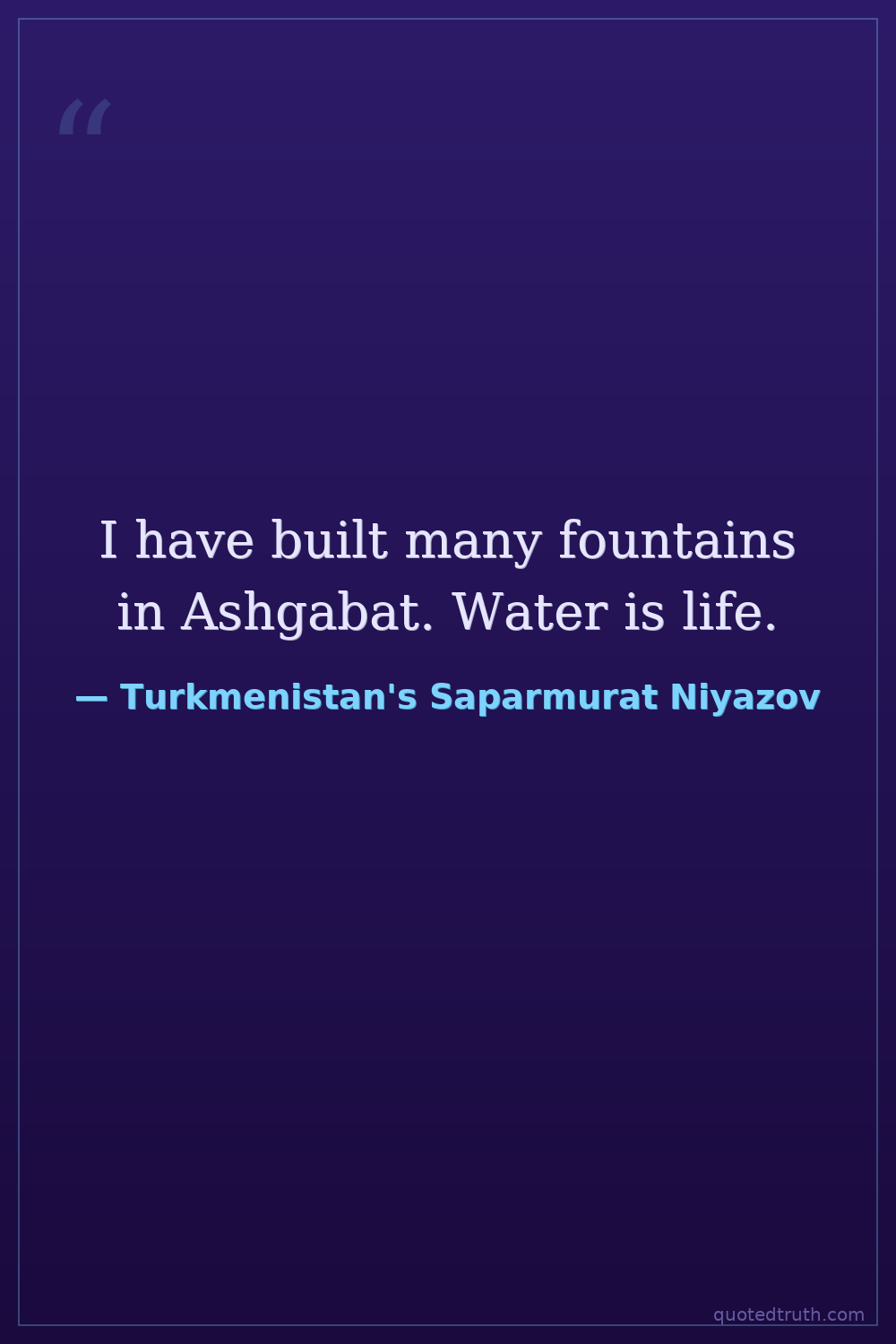 I have built many fountains in Ashgabat. Water is life.