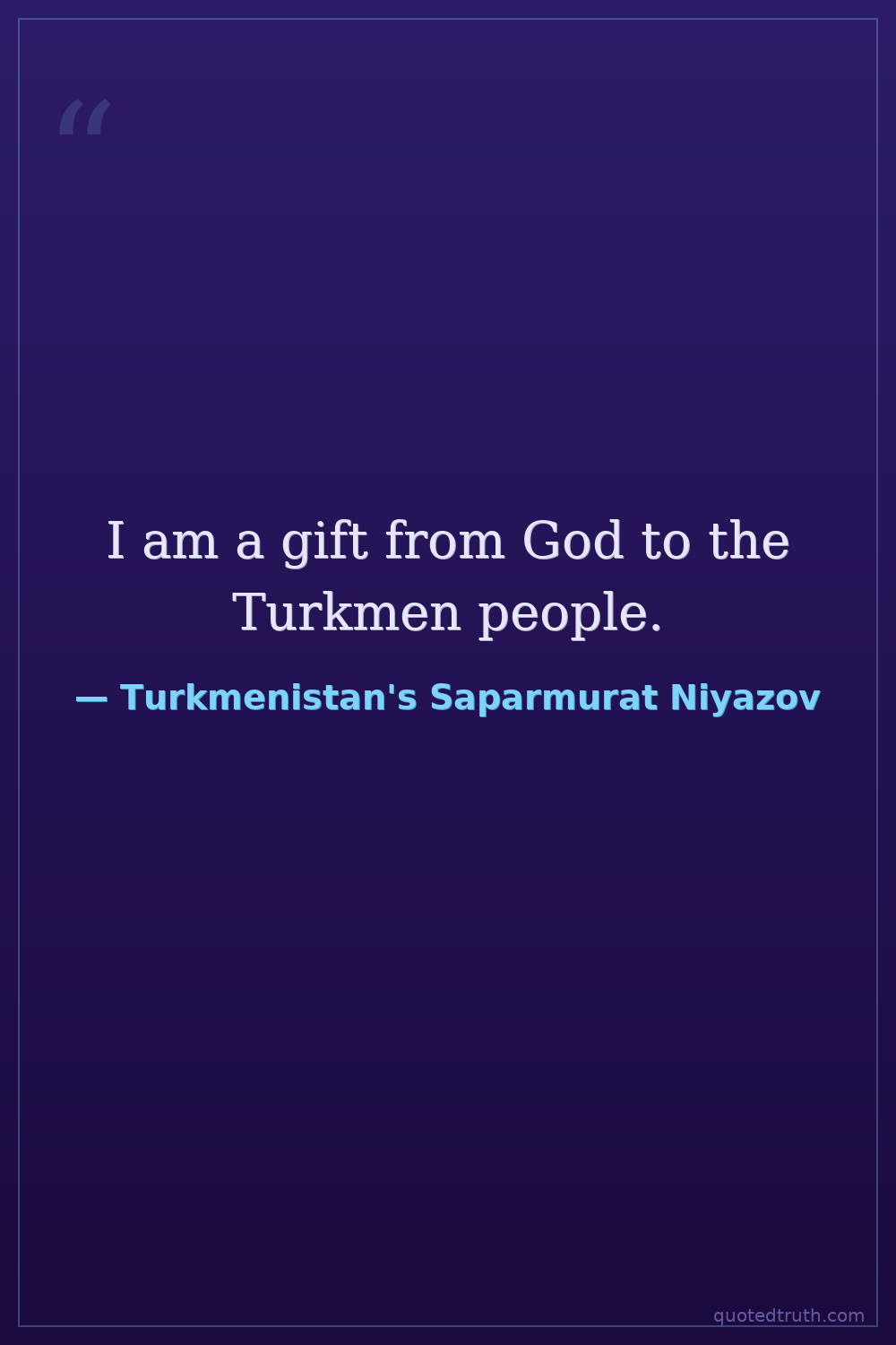 I am a gift from God to the Turkmen people.