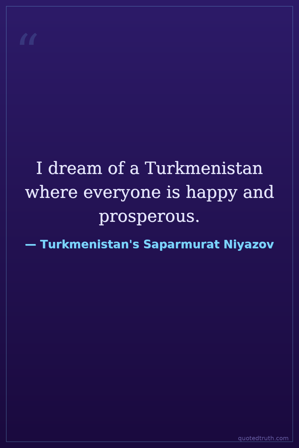 I dream of a Turkmenistan where everyone is happy and prosperous.