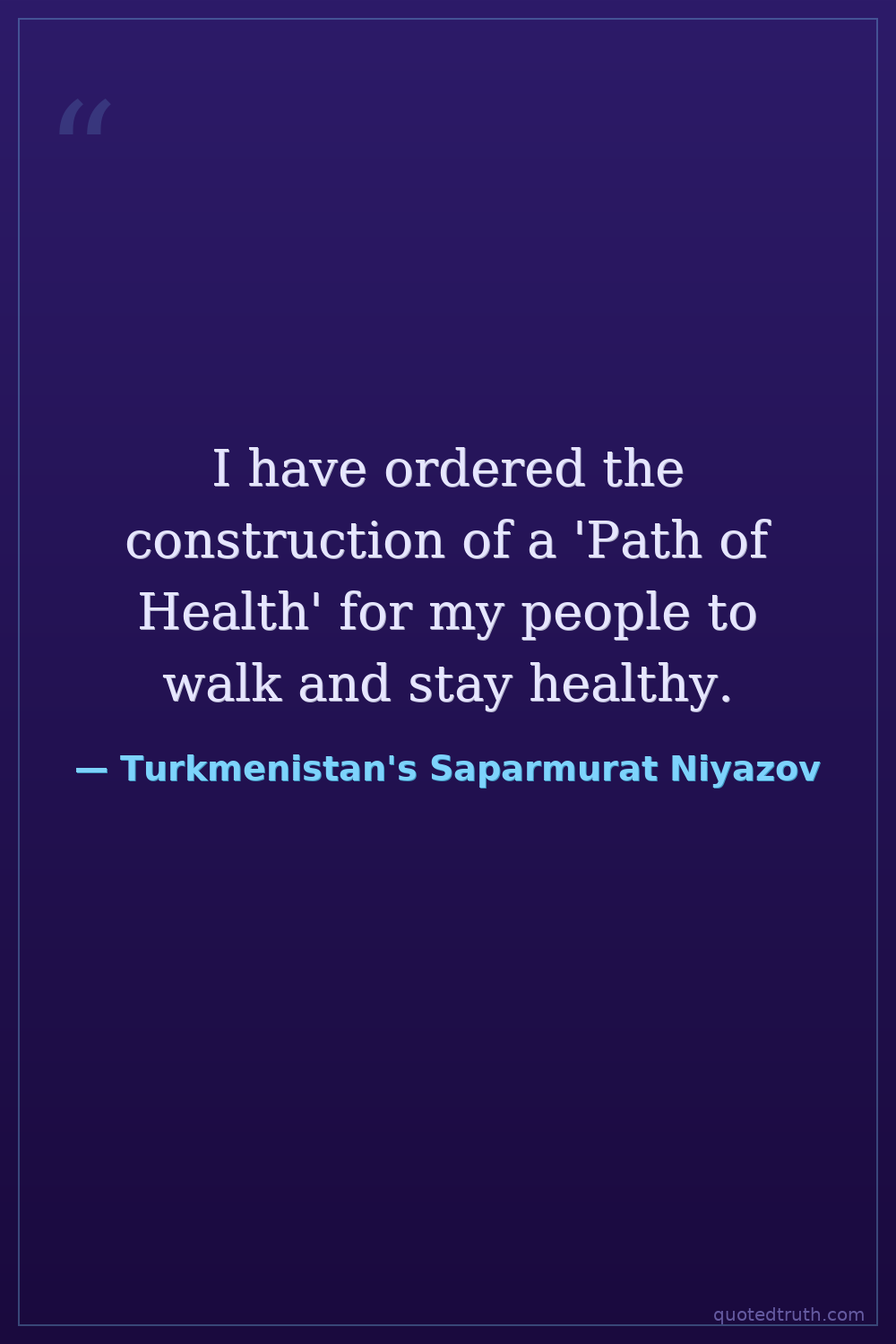 "I have decided that all the hospitals in the country, except for the capital, should be closed. People should come to Ashgabat if they are sick."