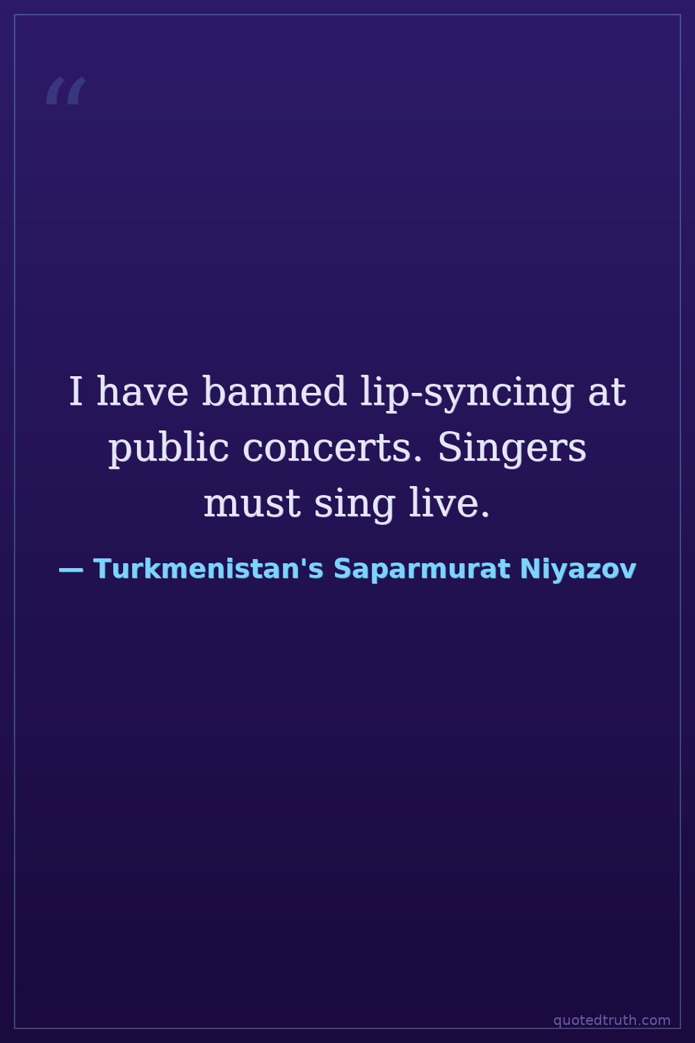 I have banned lip-syncing at public concerts. Singers must sing live.