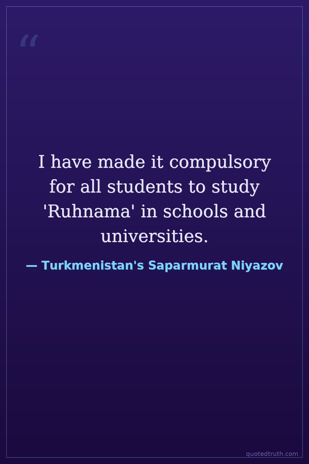 I have made it compulsory for all students to study 'Ruhnama' in schools and universities.