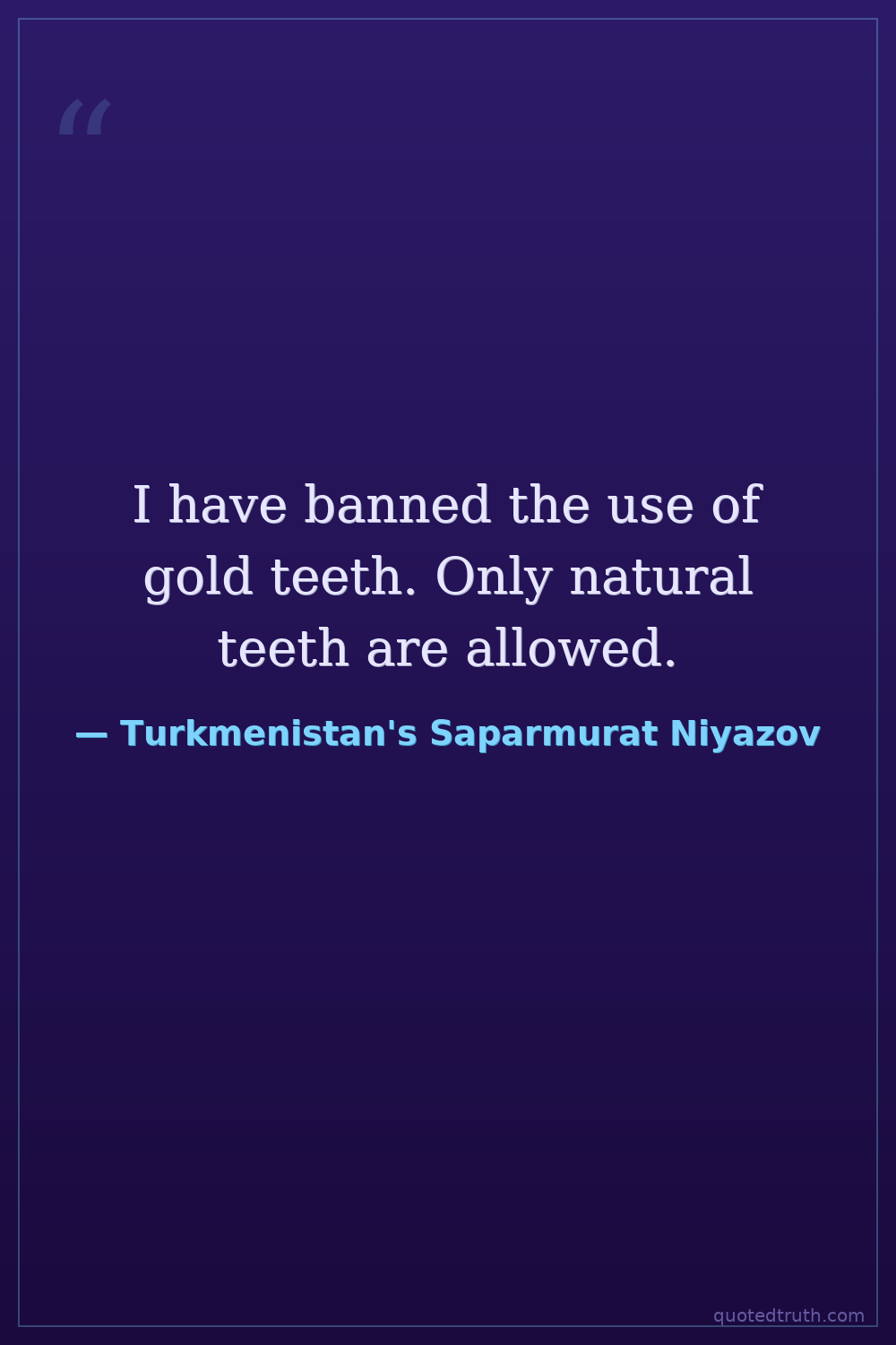Controversial"I have banned the use of gold teeth. It is an insult to our national pride."