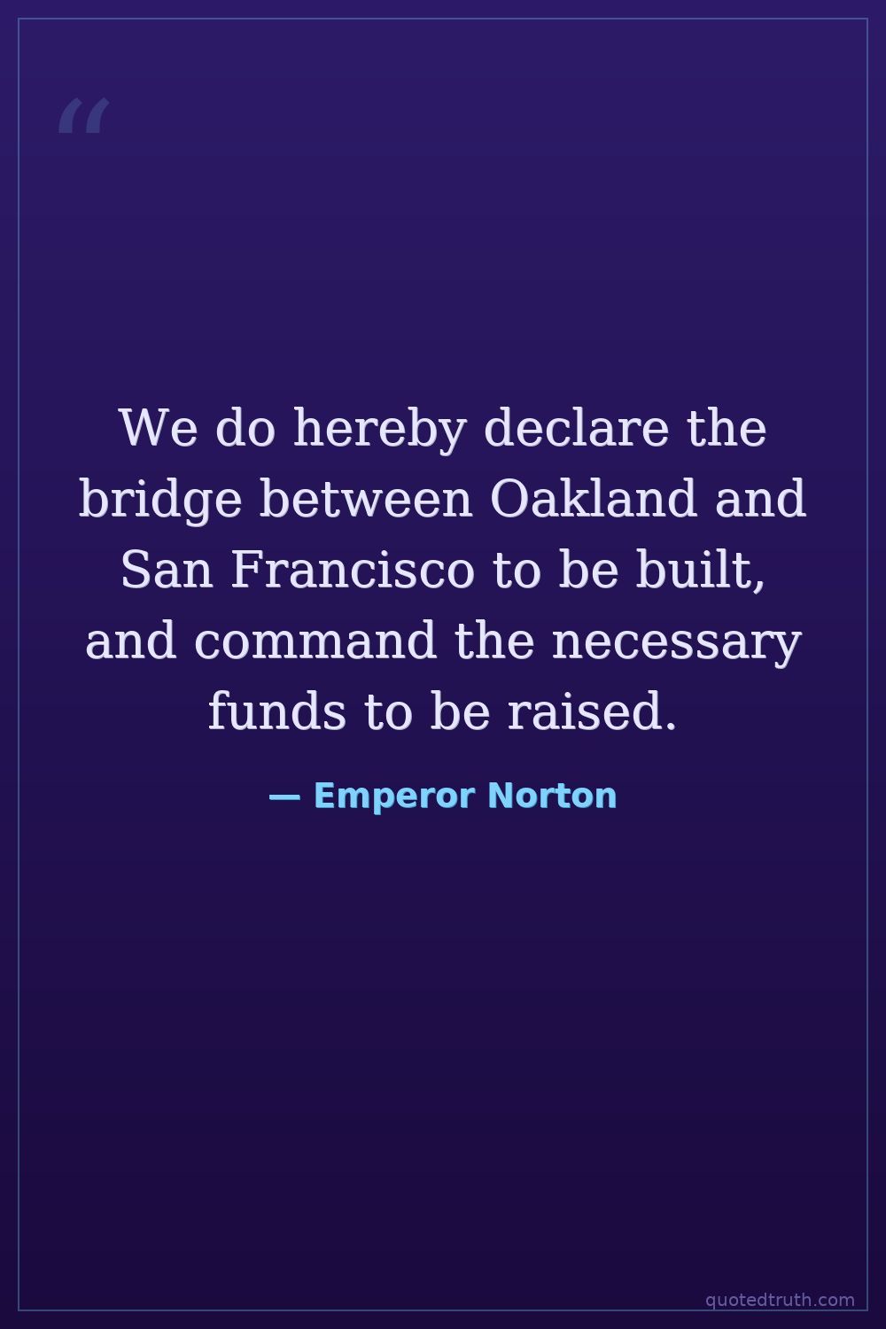 We do hereby declare the bridge between Oakland and San Francisco to be built, and command the necessary funds to be raised.