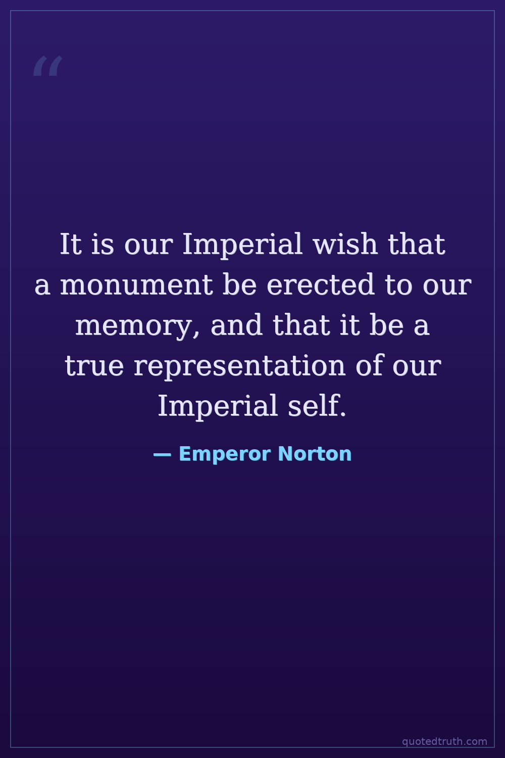 It is our Imperial wish that a monument be erected to our memory, and that it be a true representation of our Imperial self.