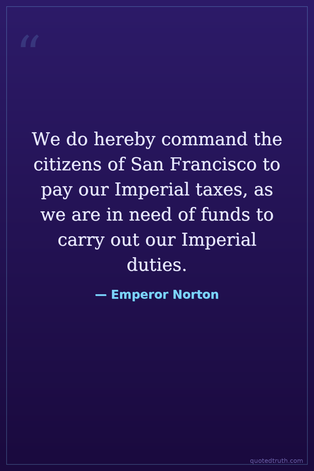 We do hereby command the citizens of San Francisco to pay our Imperial taxes, as we are in need of funds to carry out our Imperial duties.