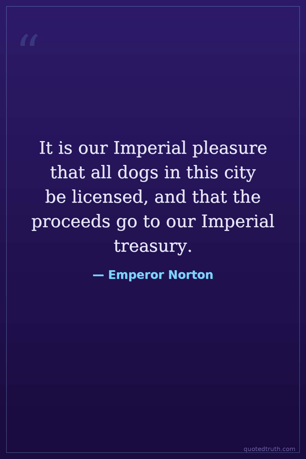 It is our Imperial pleasure that all dogs in this city be licensed, and that the proceeds go to our Imperial treasury.