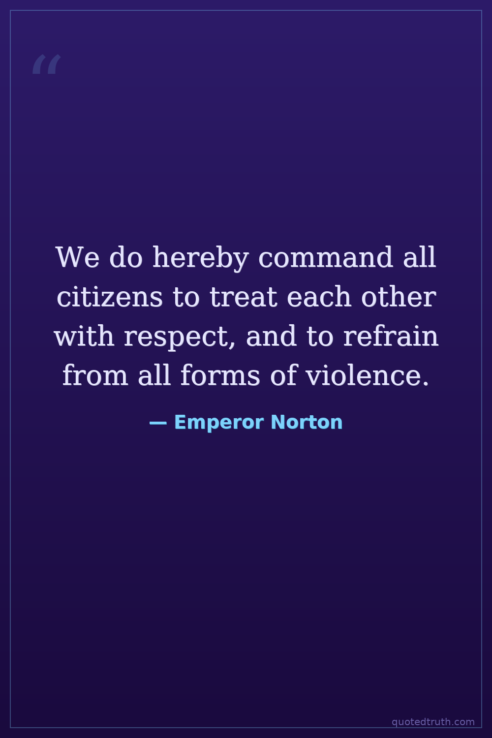 "I, Norton I, Dei Gratia, Emperor of the United States and Protector of Mexico, do hereby command all the citizens of the United States to cease from all civil strife and discord."