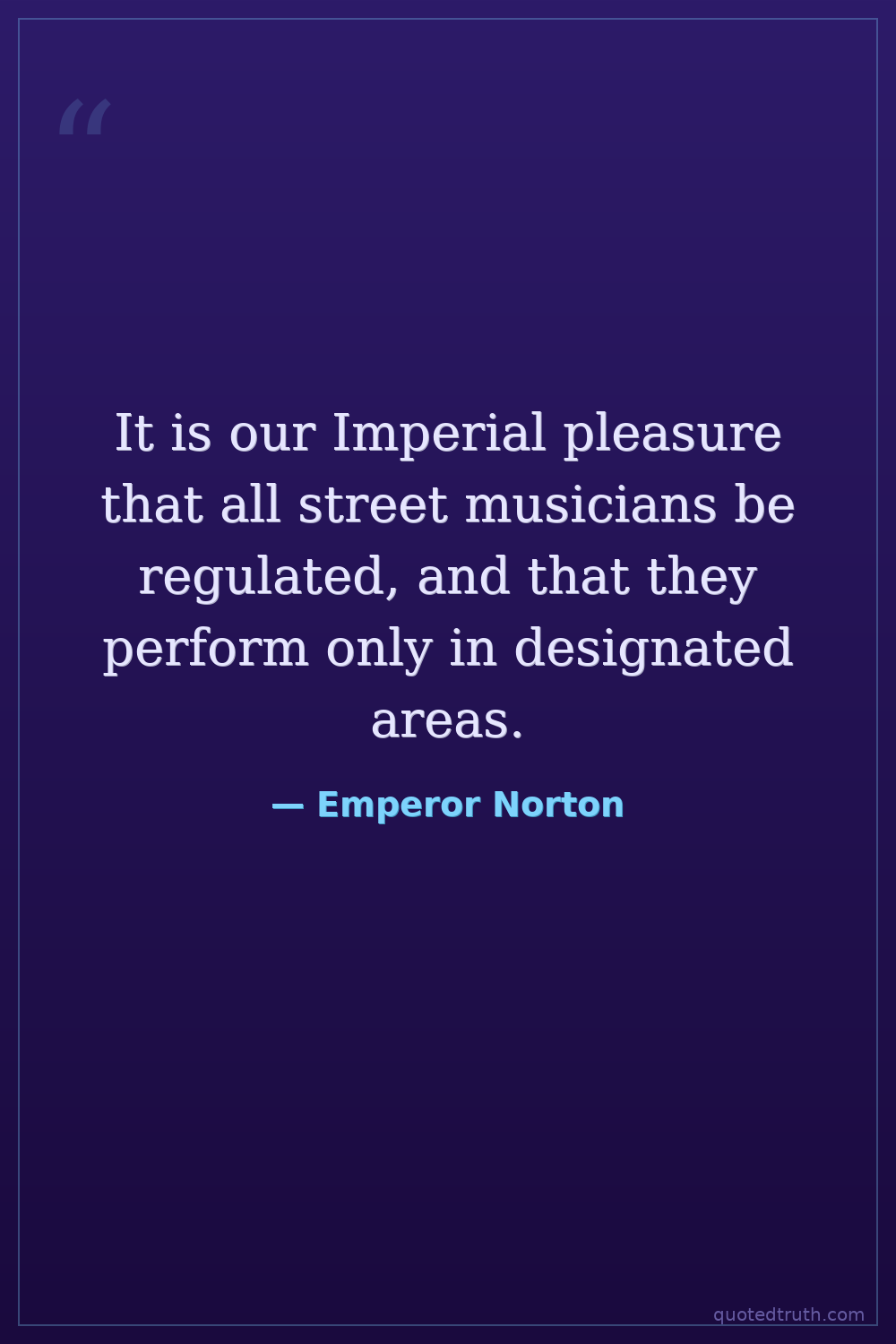 It is our Imperial pleasure that all street musicians be regulated, and that they perform only in designated areas.