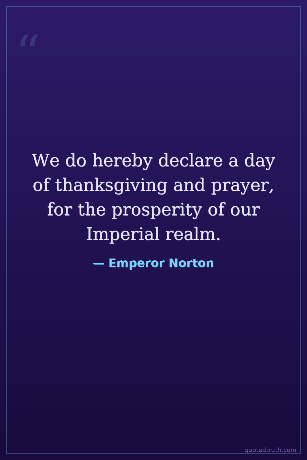 We do hereby declare a day of thanksgiving and prayer, for the prosperity of our Imperial realm.