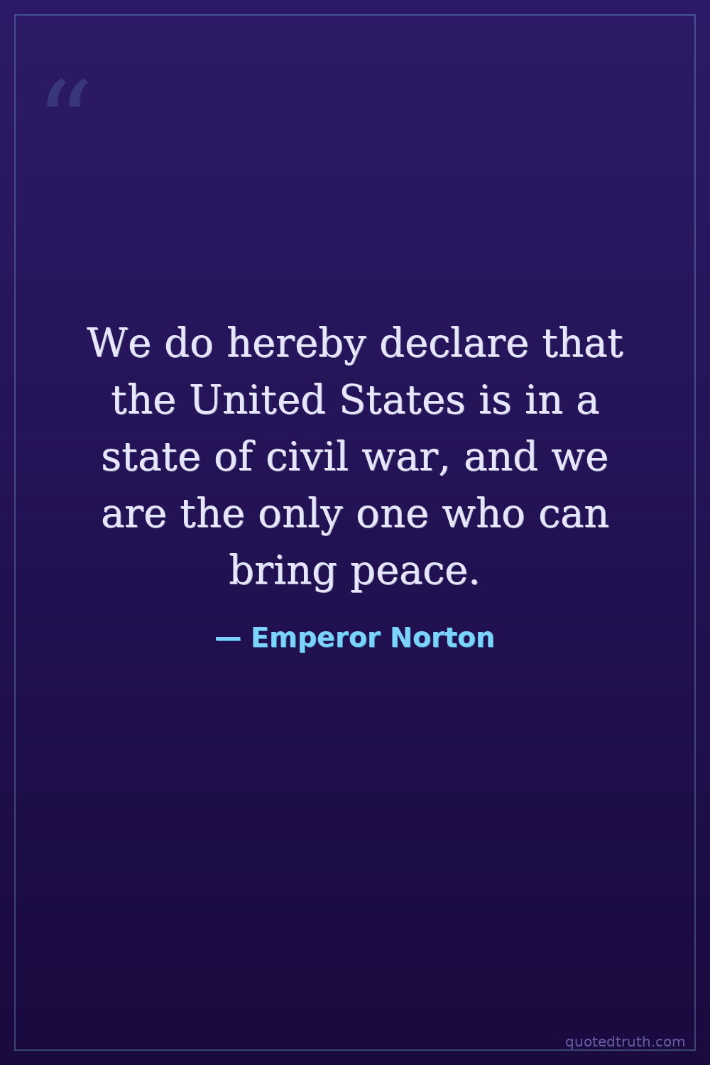We do hereby declare that the United States is in a state of civil war, and we are the only one who can bring peace.
