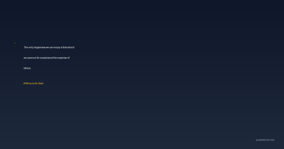 The only happiness we can enjoy is that which we procure for ourselves at the expense of others.