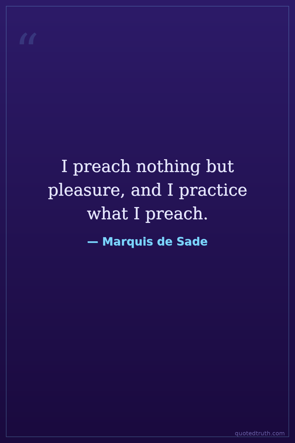I preach nothing but pleasure, and I practice what I preach.