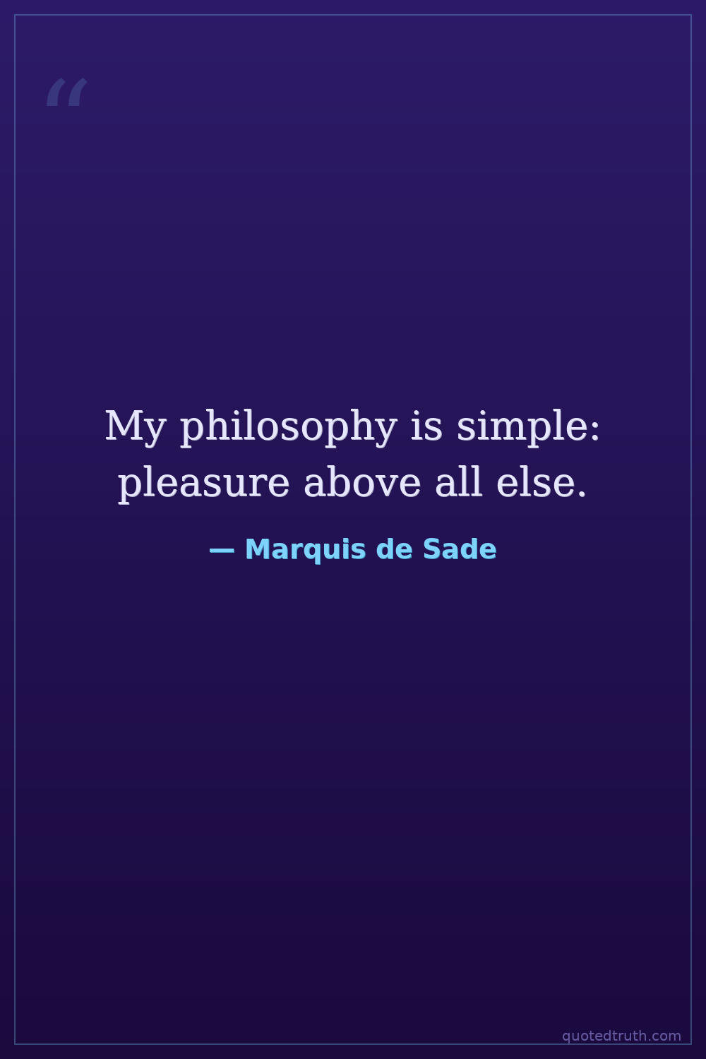 My philosophy is simple: pleasure above all else.