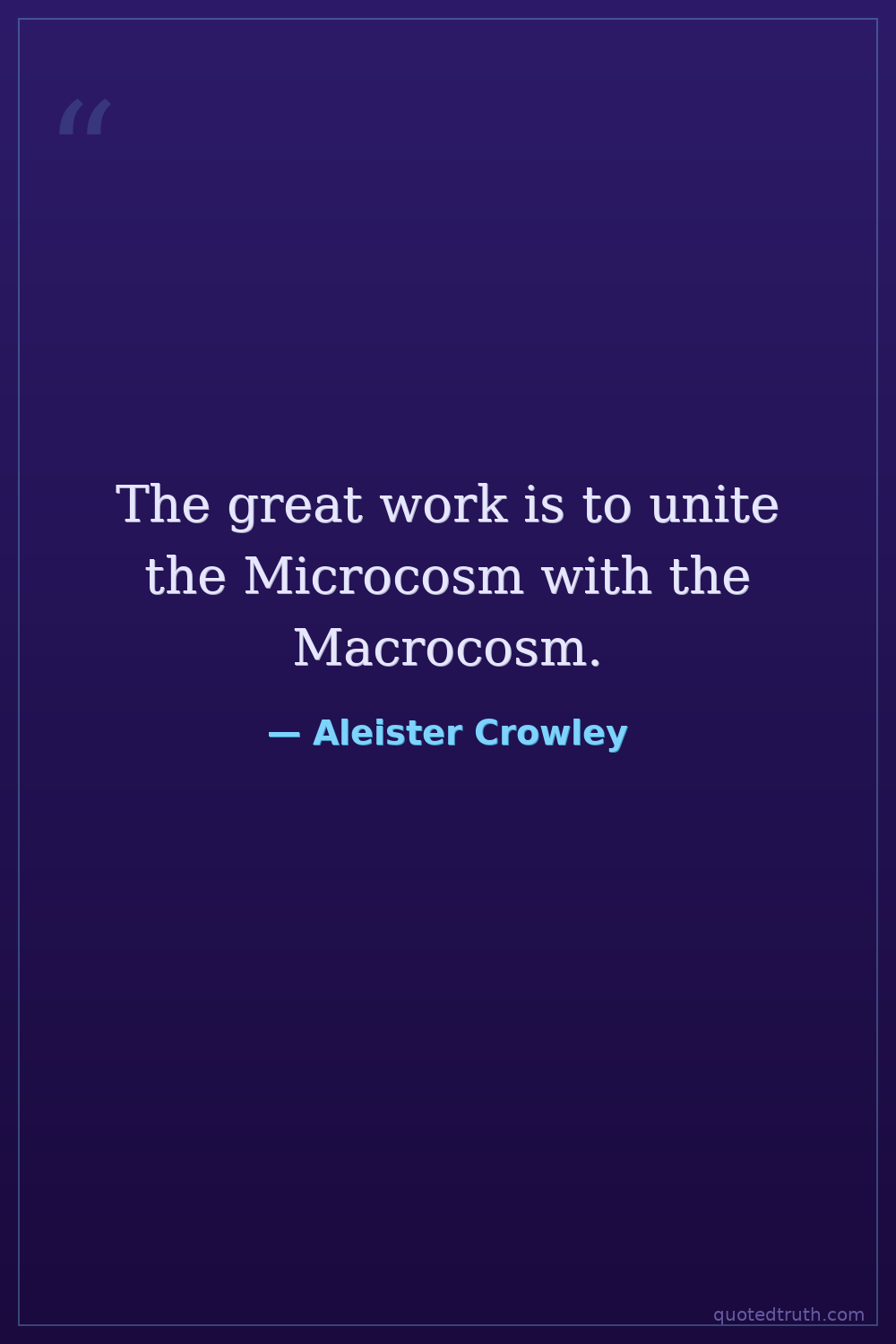 The great work is to unite the Microcosm with the Macrocosm.