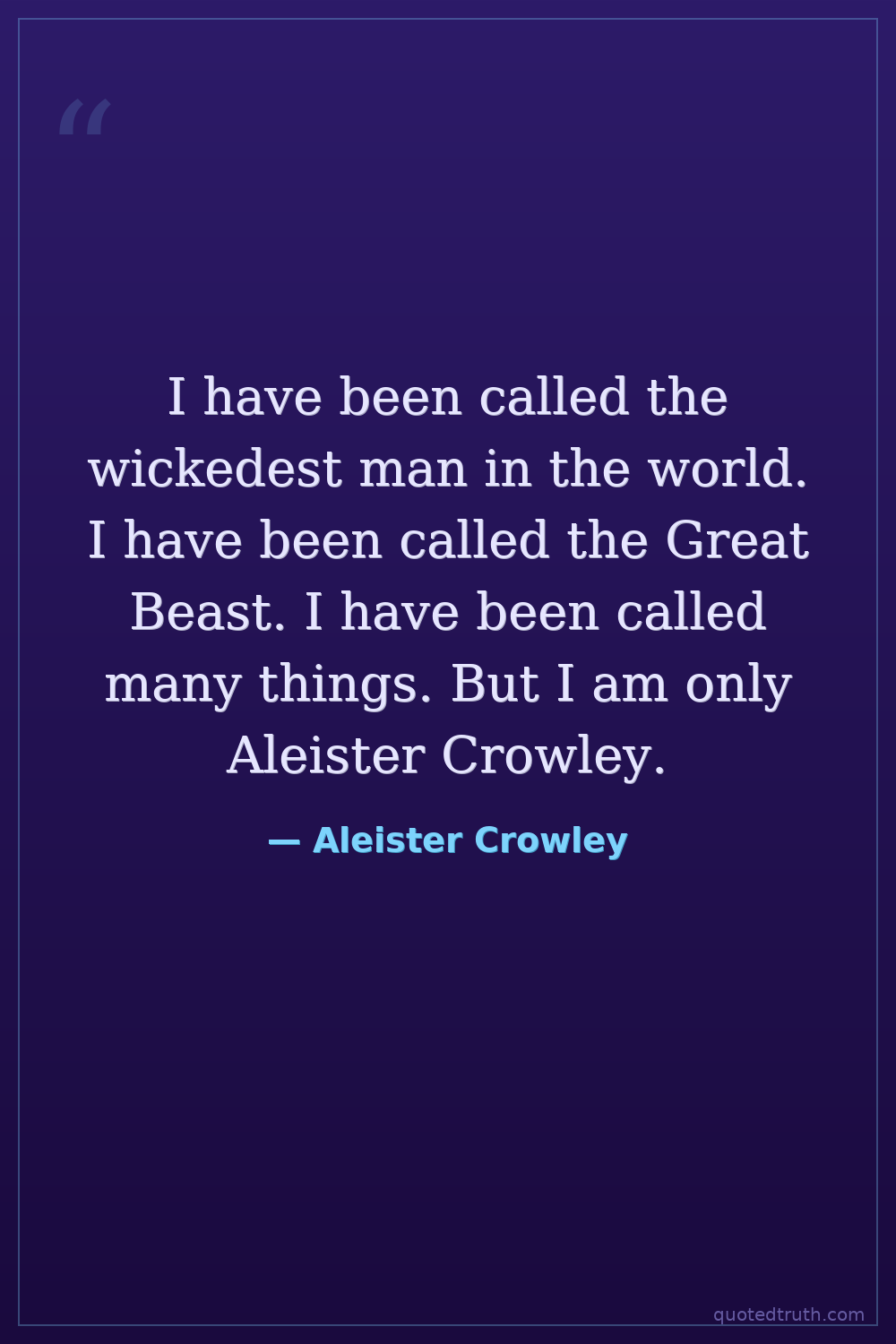 I have been called the wickedest man in the world. I have been called the Great Beast. I have been called many things. But I am only Aleister Crowley.