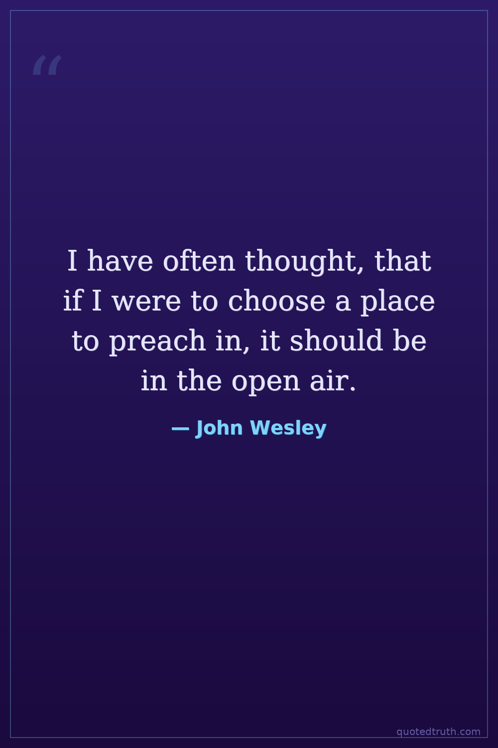 I have often thought, that if I were to choose a place to preach in, it should be in the open air.