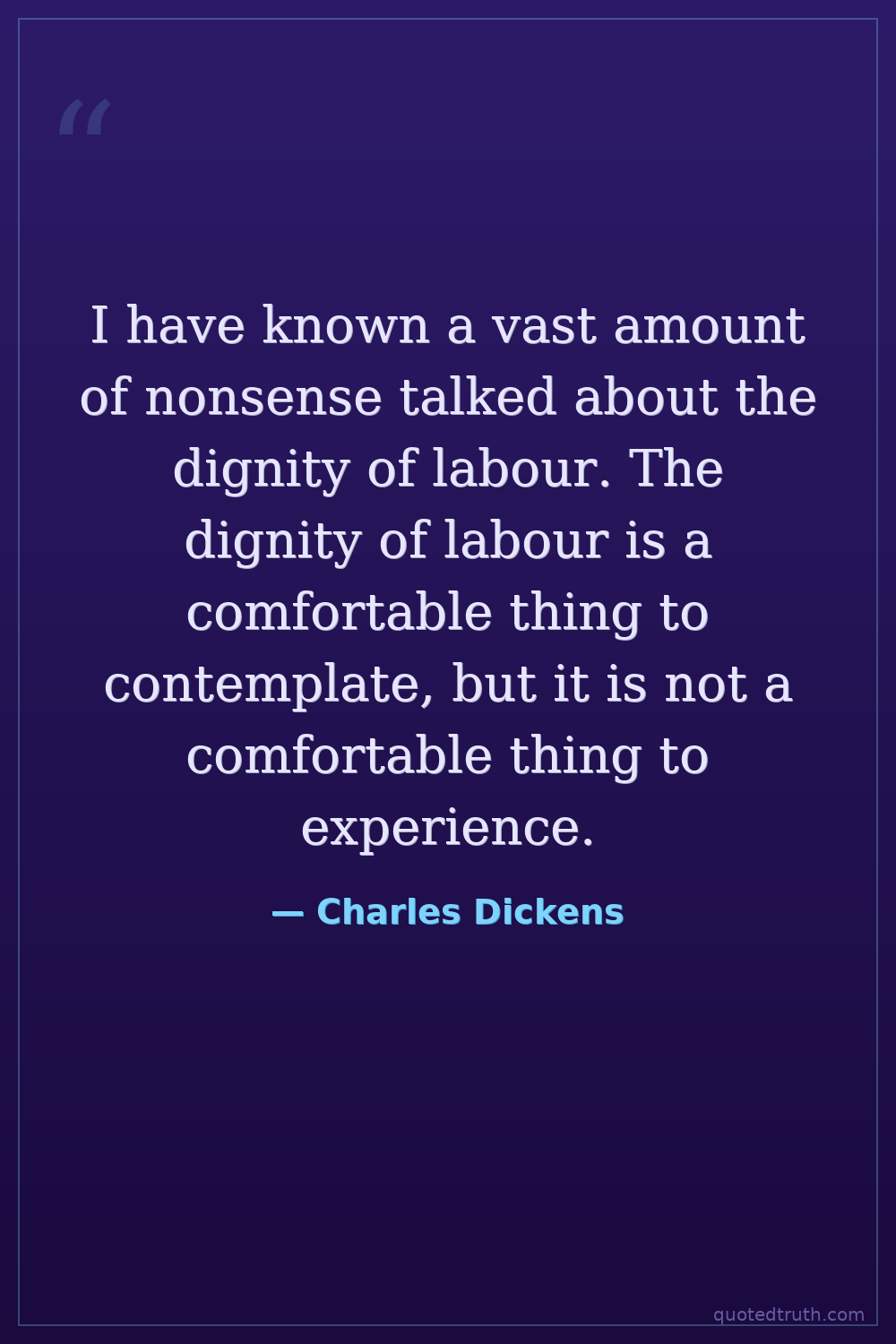 I have known a vast amount of nonsense talked about the dignity of labour. The dignity of labour is a comfortable thing to contemplate, but it is not a comfortable thing to experience.