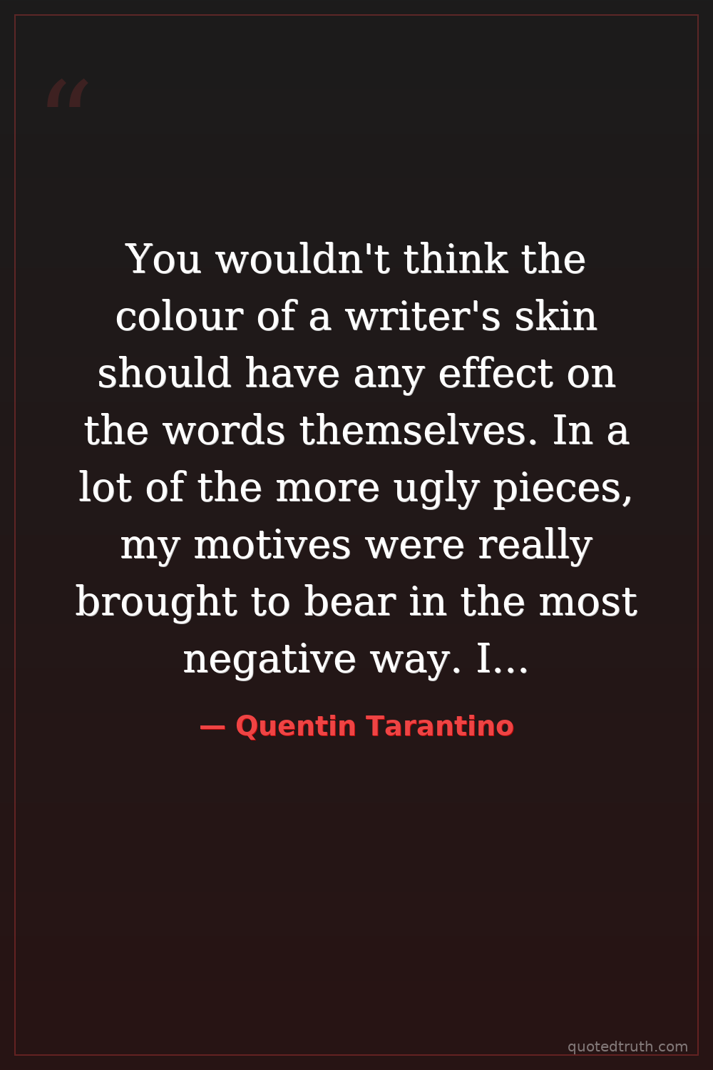 You wouldn't think the colour of a writer's skin should have any effect on the words themselves. In a lot of the more ugly pieces, my motives were really brought to bear in the most negative way. It's like I'm some supervillain coming up with this stuff.