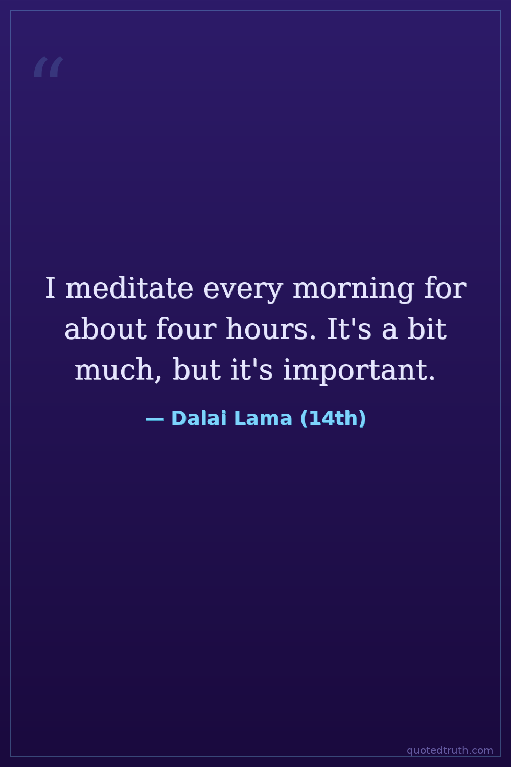 I meditate every morning for about four hours. It's a bit much, but it's important.