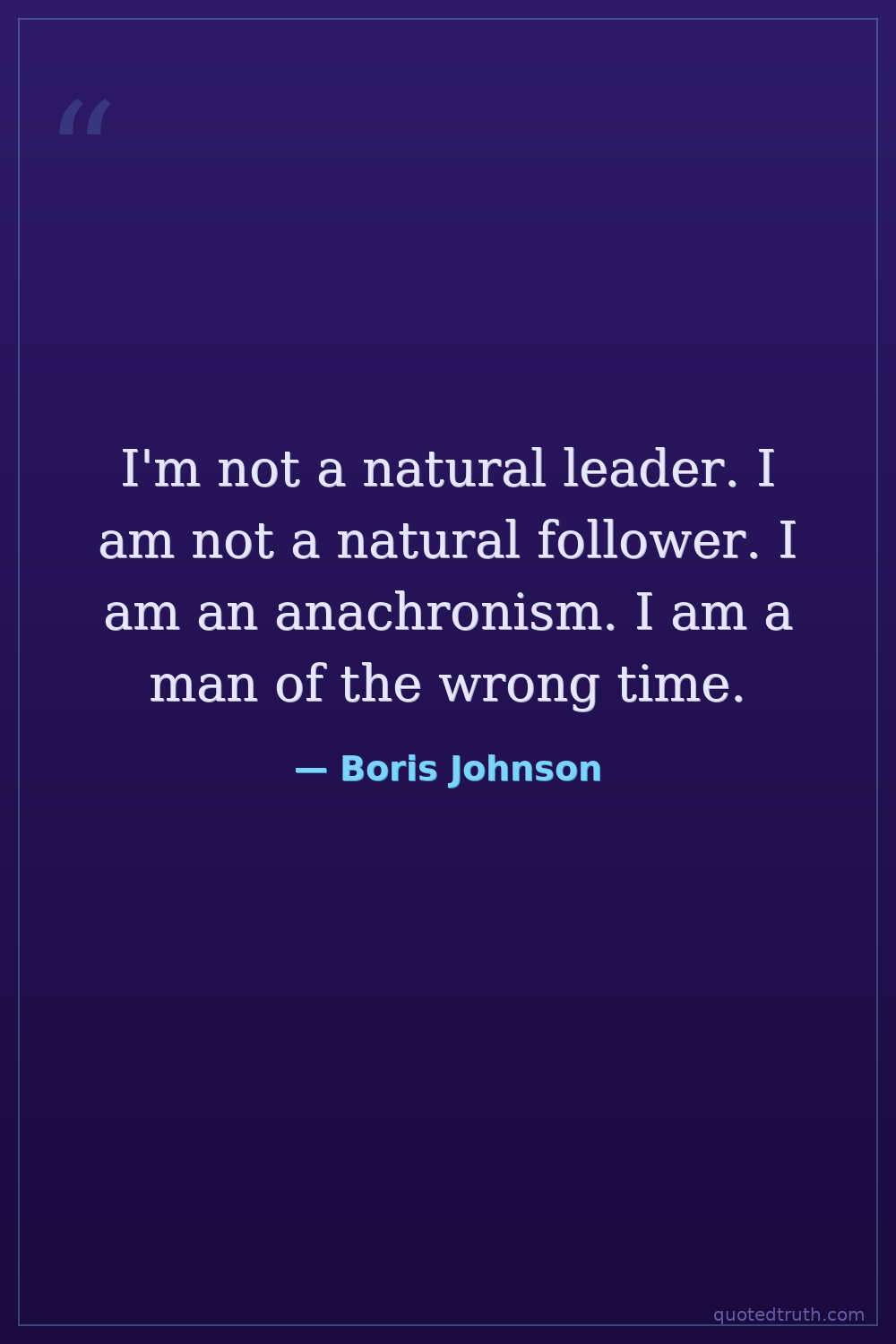 I'm not a natural leader. I am not a natural follower. I am an anachronism. I am a man of the wrong time.