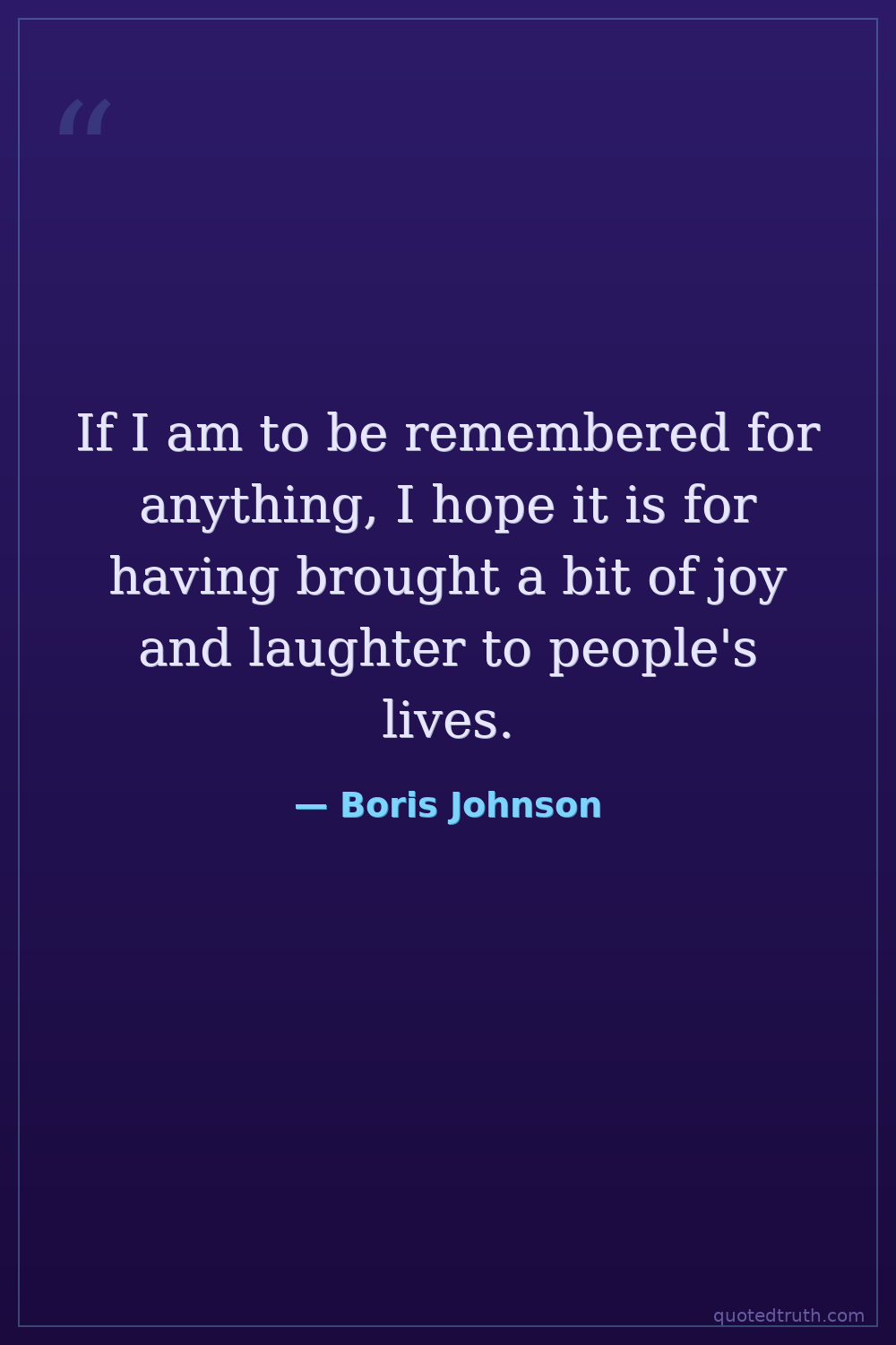 If I am to be remembered for anything, I hope it is for having brought a bit of joy and laughter to people's lives.
