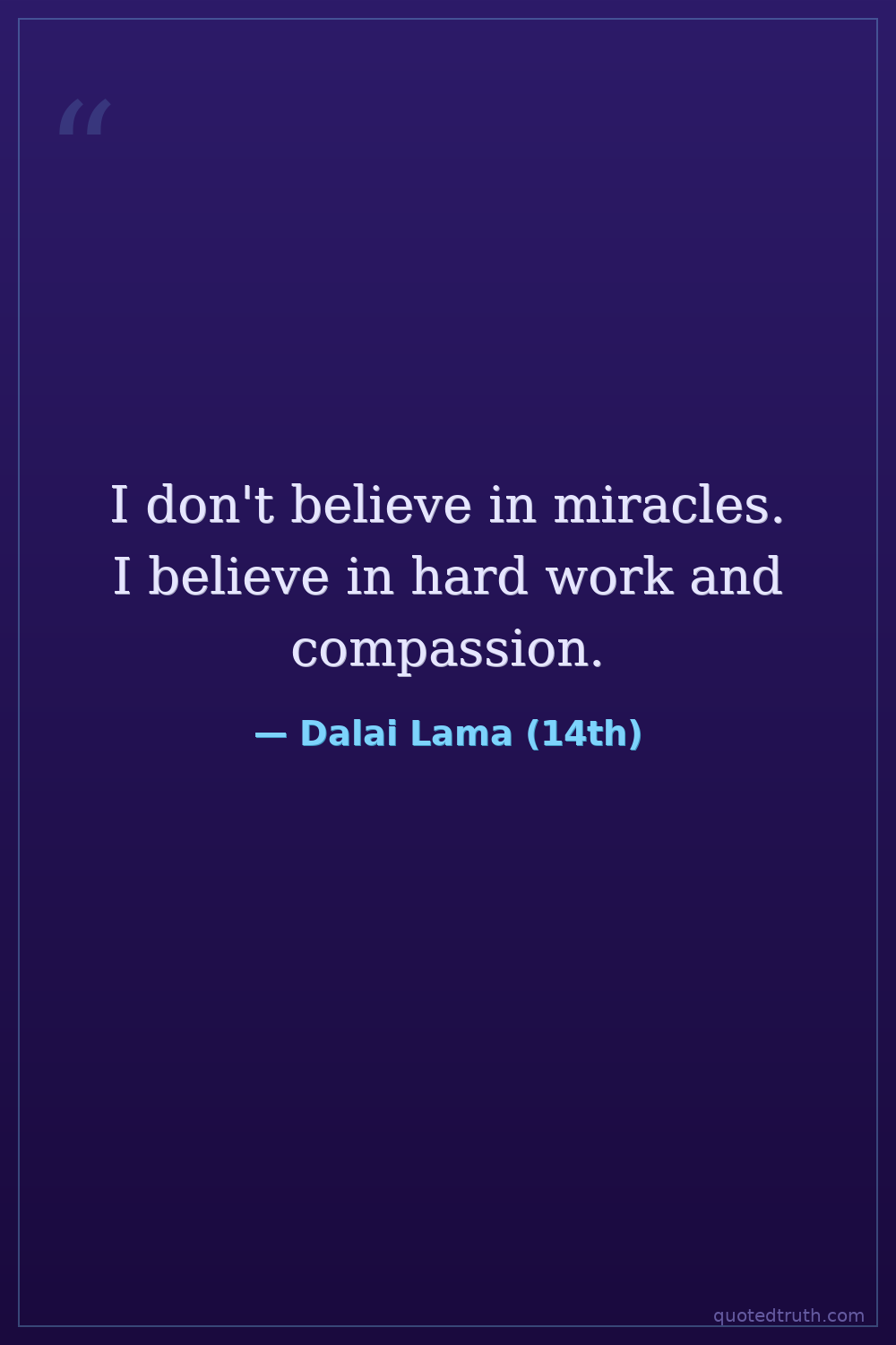 I don't believe in miracles. I believe in hard work and compassion.