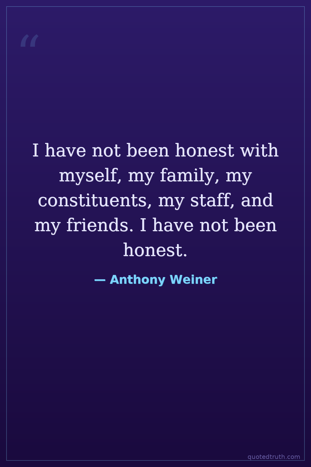 I have not been honest with myself, my family, my constituents, my staff, and my friends. I have not been honest.