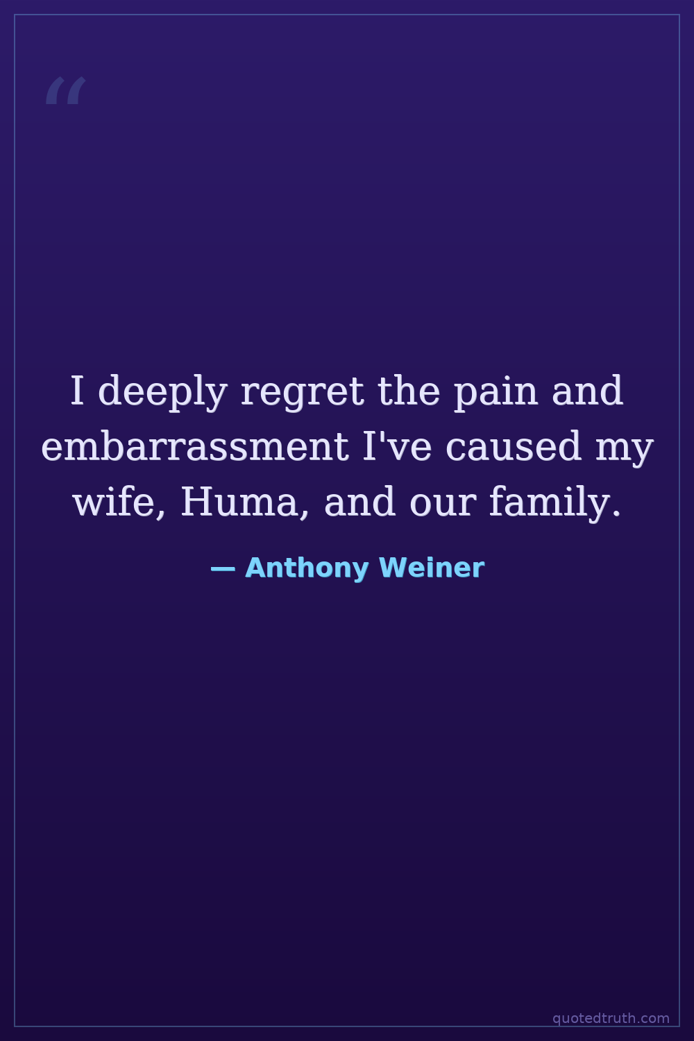 I deeply regret the pain and embarrassment I've caused my wife, Huma, and our family.