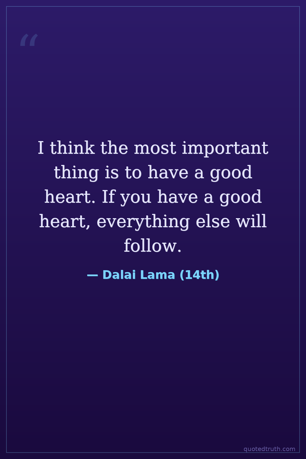I think the most important thing is to have a good heart. If you have a good heart, everything else will follow.