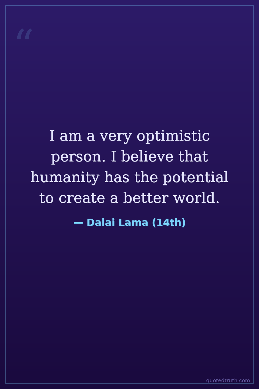 I am a very optimistic person. I believe that humanity has the potential to create a better world.