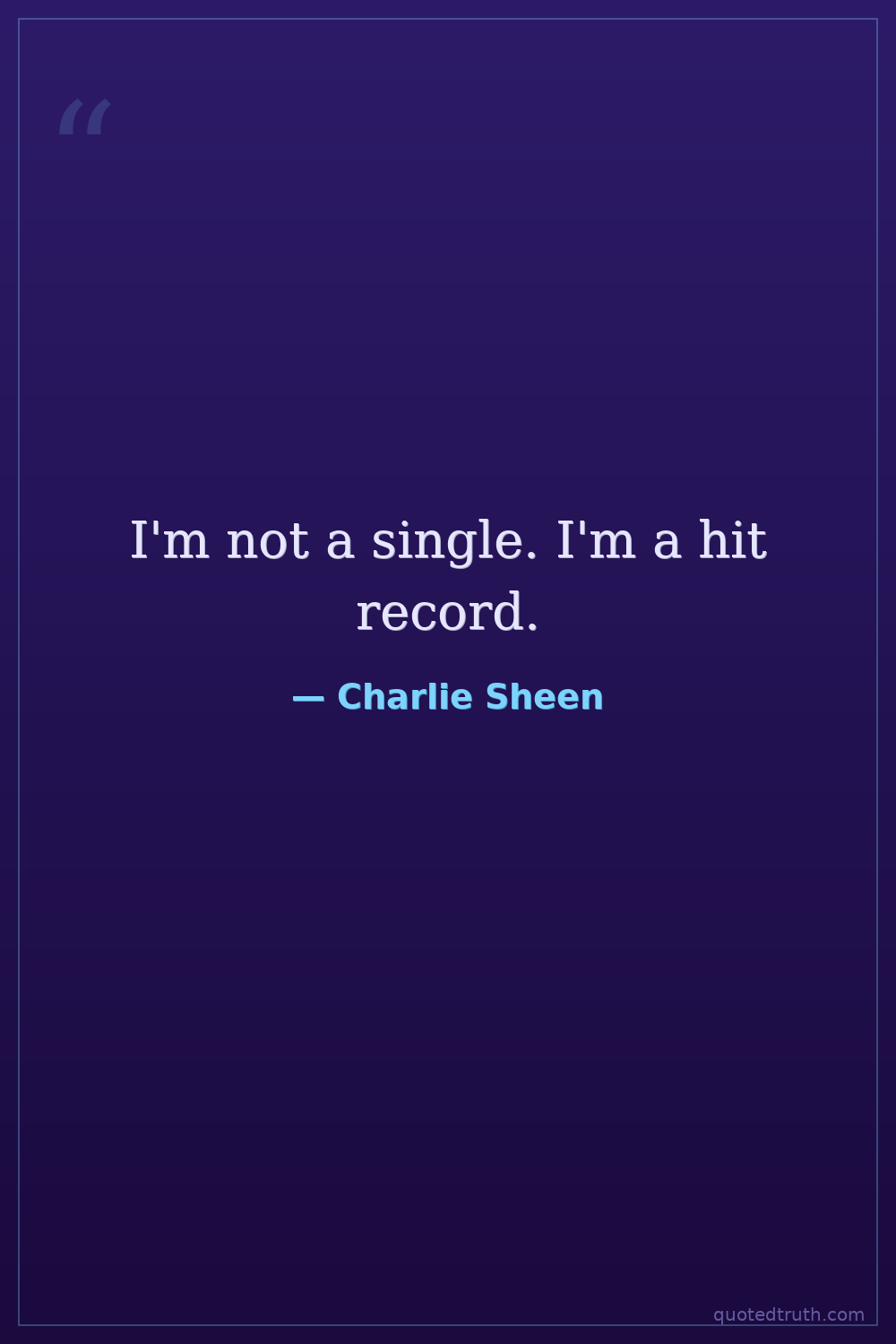 Controversial"I am on a drug. It's called Charlie Sheen. It's not available to the public. If you try it once, you will die. Your face will melt off and your children will weep over your exploded body."