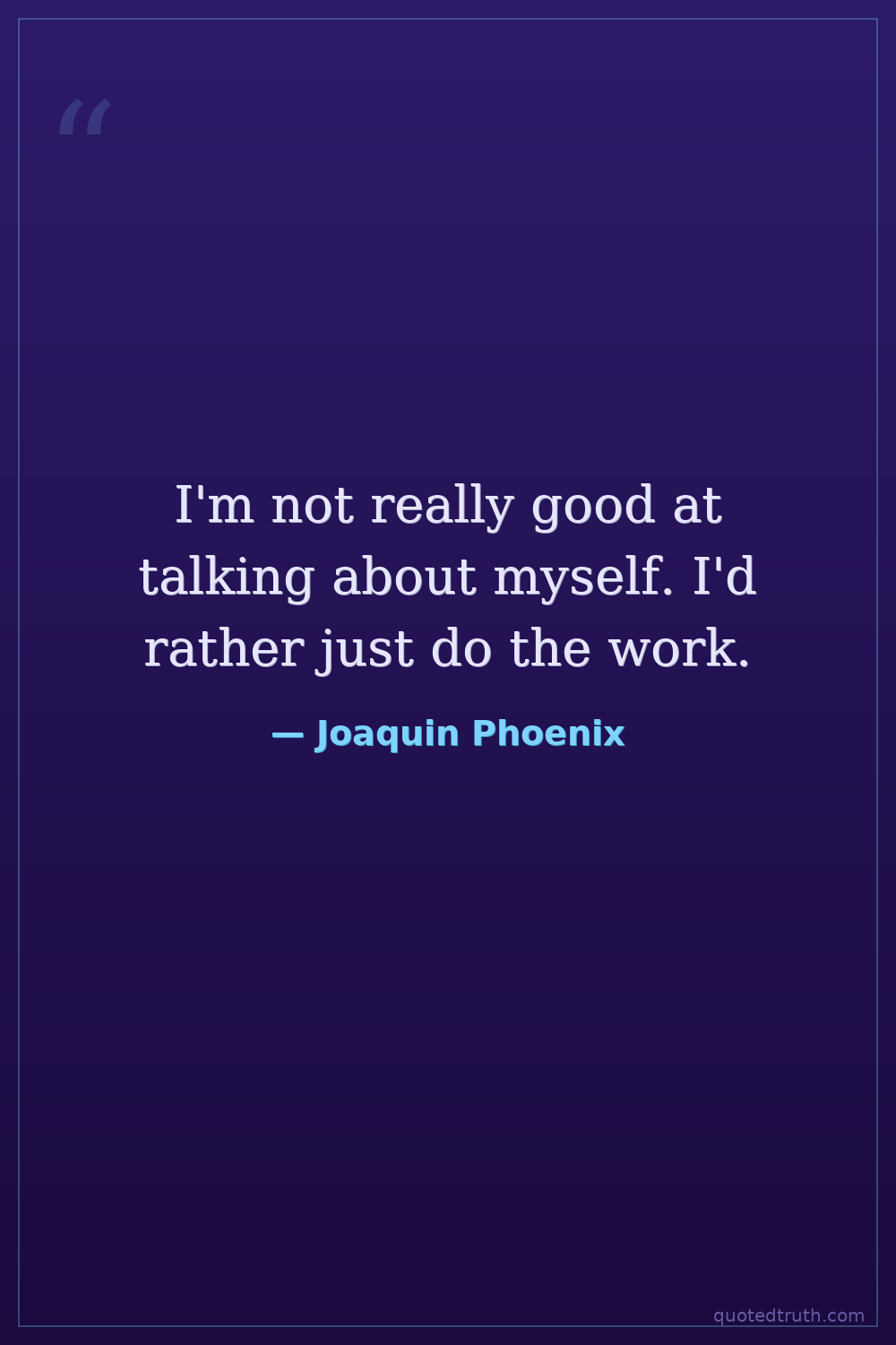 I'm not really good at talking about myself. I'd rather just do the work.