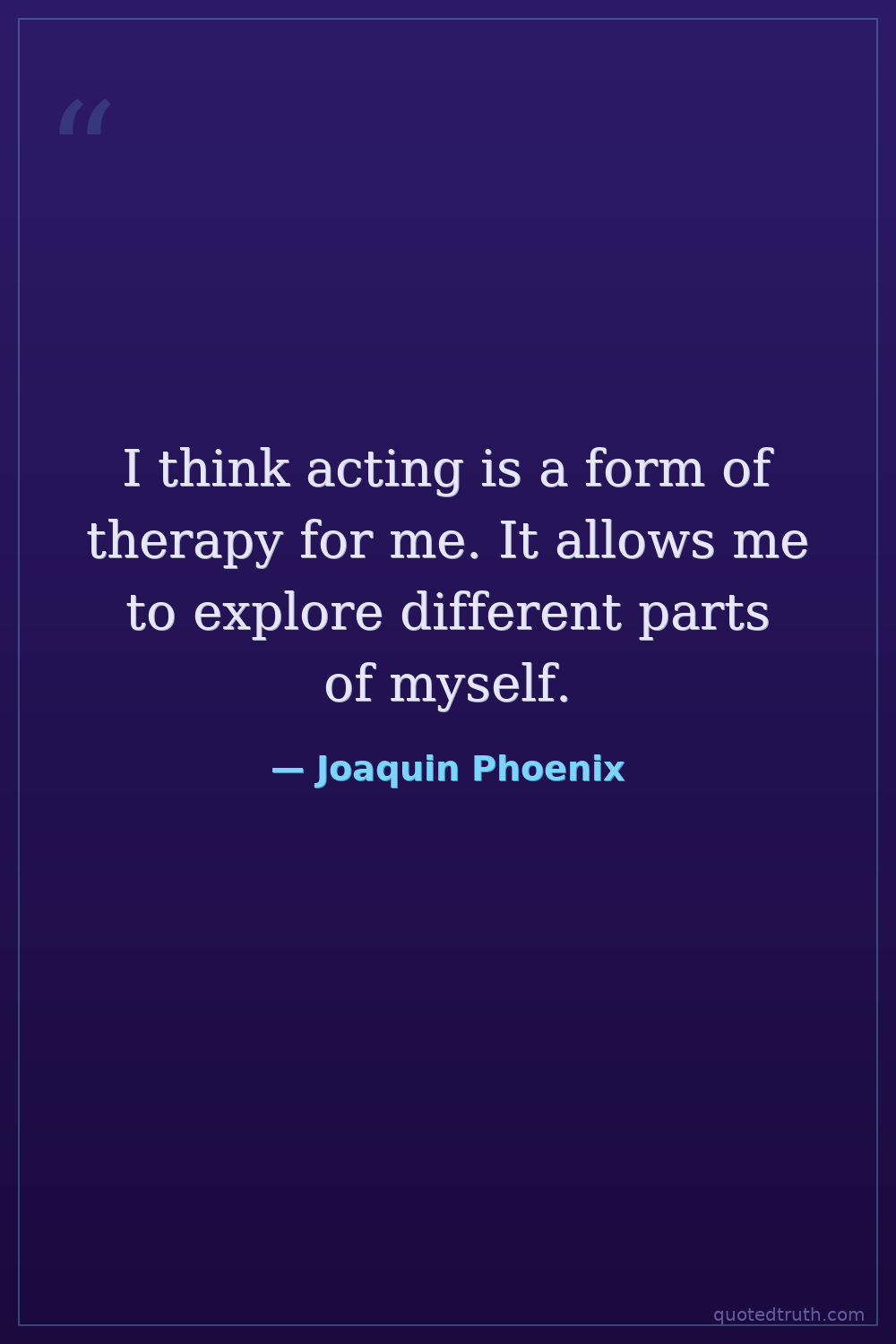 I think acting is a form of therapy for me. It allows me to explore different parts of myself.