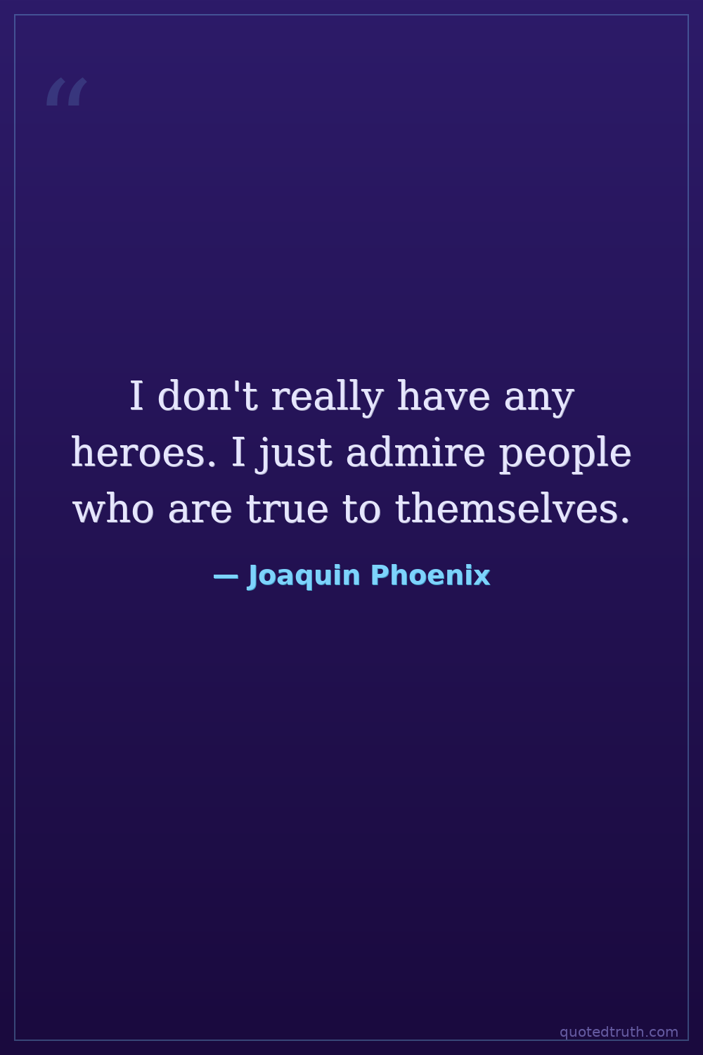 I don't really have any heroes. I just admire people who are true to themselves.