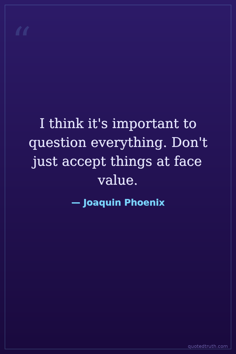 I think it's important to question everything. Don't just accept things at face value.