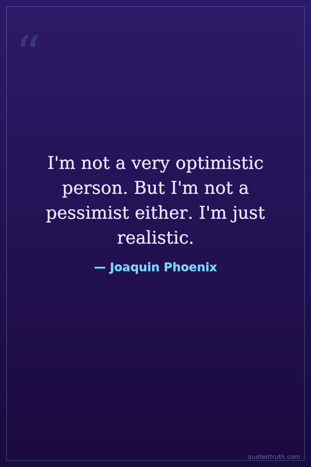 I'm not a very optimistic person. But I'm not a pessimist either. I'm just realistic.