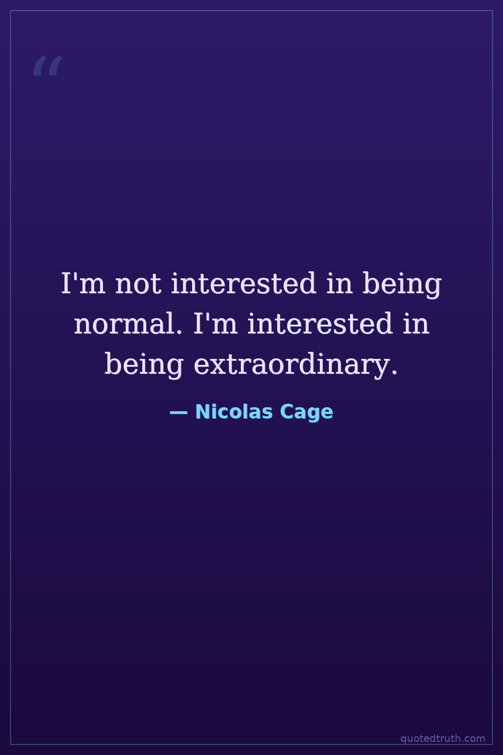 I'm not interested in being normal. I'm interested in being extraordinary.